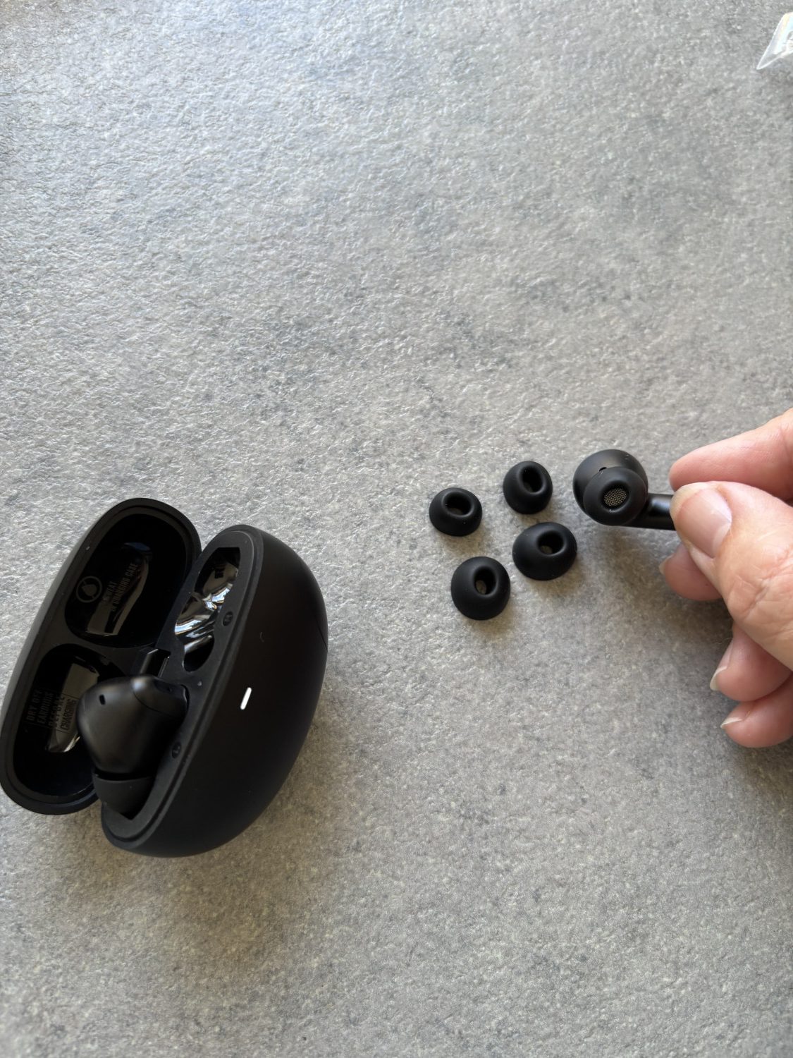 Hun roser de medfølgende ørepropstørrelser og den gode lyd, men bemÌrker ogsü en mindre ulempe ved enkelte opkald, hvor mikrofonplaceringen kan püvirke lydstyrken.