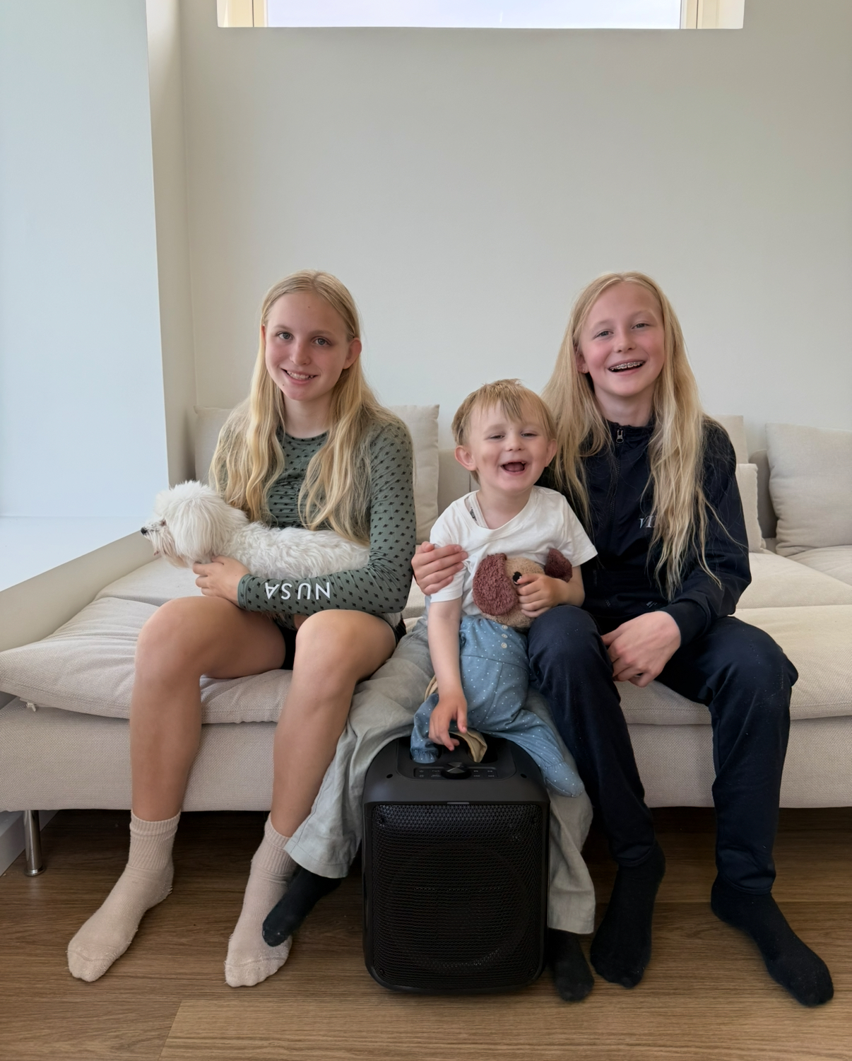Noget af det, som jeg synes (og pigerne for den sags skyld) er aller fedest er, at den bare er så intuitiv at bruge. Den kan en helt masse smart, man kan blandt andet koble flere MIIEGO højtalere sammen, man kan også koble en mikrofon til osv. men den er bare enormt brugervenlig. Så sådan nogle ikke-tech-mennesker som mig også kan være med. Og vi kunne bare lade den op, hvorefter det bare var plug and play. Pigerne fik stukket den i hænderne og så fandt de selv ud af det derfra. Nemt nemt nemt.