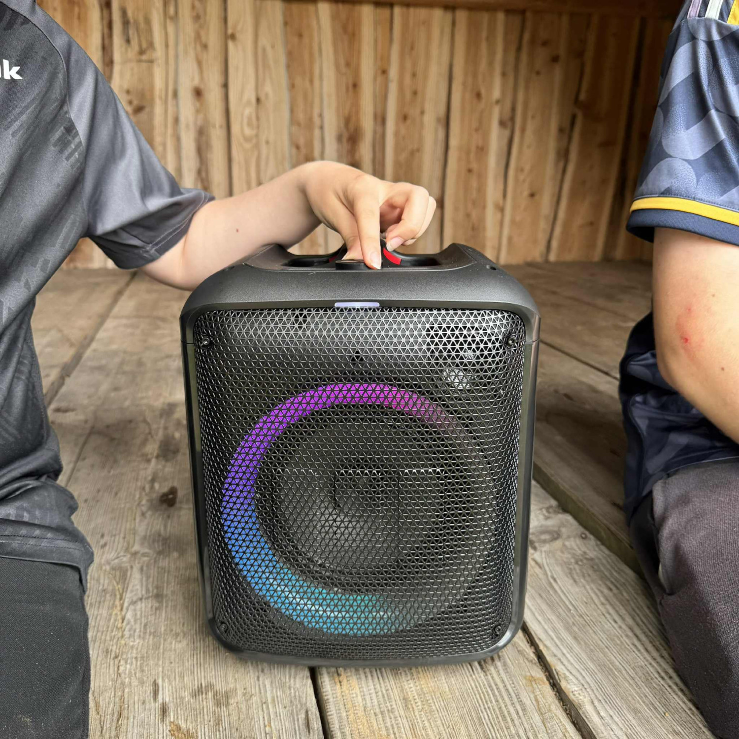 Vi har testet højtaleren i en lille måneds tid, og vi er virkelig blevet glade for den herhjemme, vi bruger den både inde som ude. Den giver en god lyd og vi tager den derfor ofte med på tur, ud på terrassen eller hen til trampolinen.