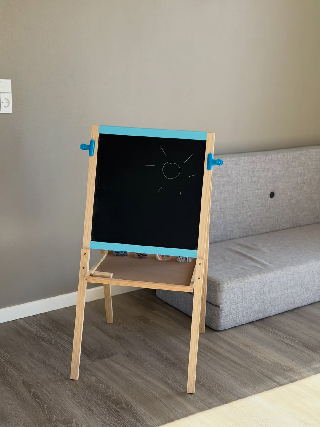 Kapla-klodser, Tegnestaffeli 3-i-1 og Puslespil Mix & Match Bjørnefamilie. Jeg vidste, at tegnestaffeliet ville blive populært, men ikke SÅ populært! 😌 med to sider, kridt på den ene og whiteboard på den anden - er det virkelig årets gave herhjemme <3
