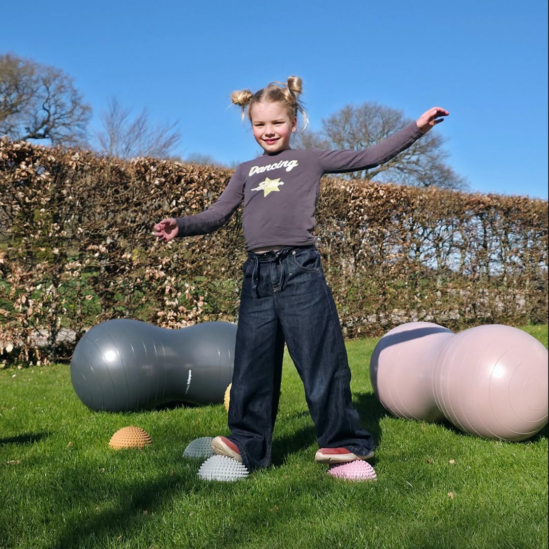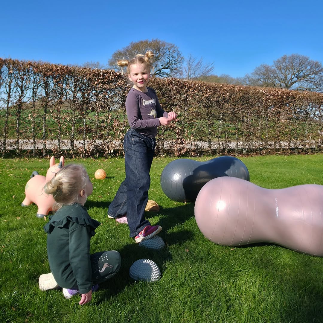 Pigerne hoppede, rullede og lavede motorikbane med den nye peanutbold fra #findthathippo