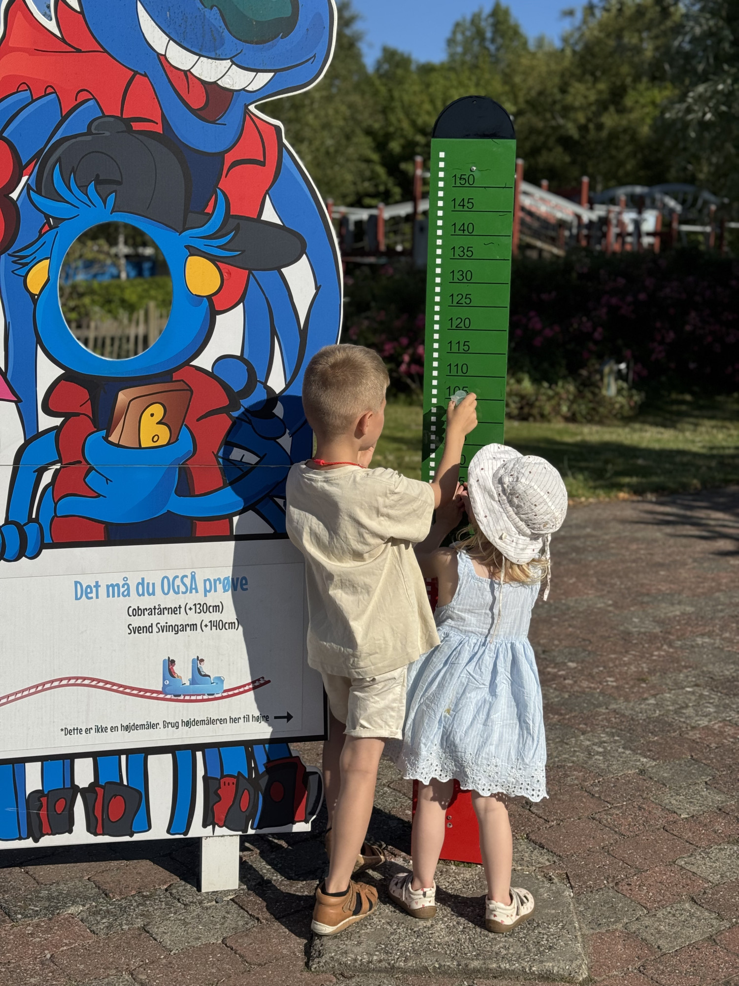Ved indgangen kan børnene blive mĂĽlt og fĂĽ et armbĂĽnd med deres højde, sĂĽ man nemt kan se, hvilke forlystelser de mĂĽ prøve. En enkel og virkelig smart løsning, som gør dagen mere overskuelig â isĂŚr for de mindste.