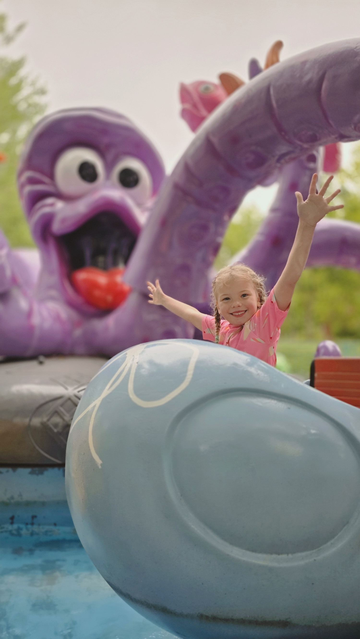 Forlystelserne spĂŚnder bredt â fra rolige oplevelser til de mindste til vilde sus i maven for de modige. Og med de skøre navne og det farverige univers er det tydeligt, at parken taler direkte ind i børnenes fantasi.