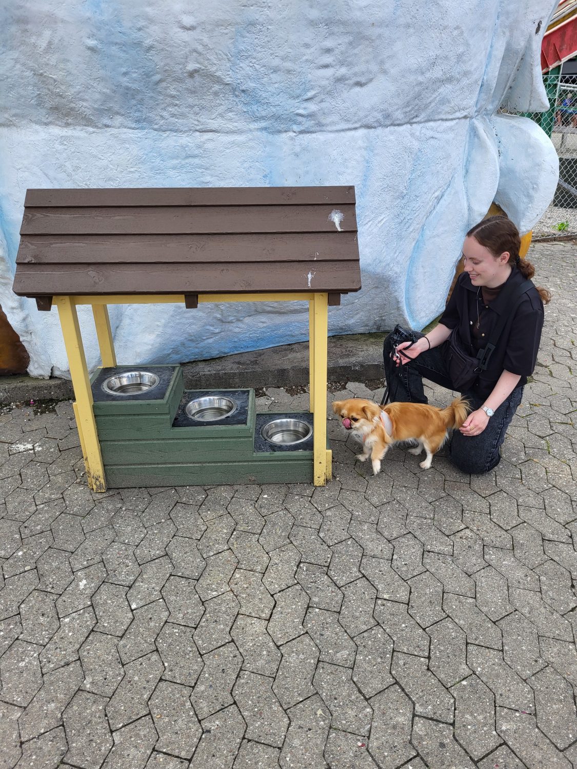 Hun fremhÌver isÌr det bløde faldunderlag og omtanken for hunde med vandbar i parken.