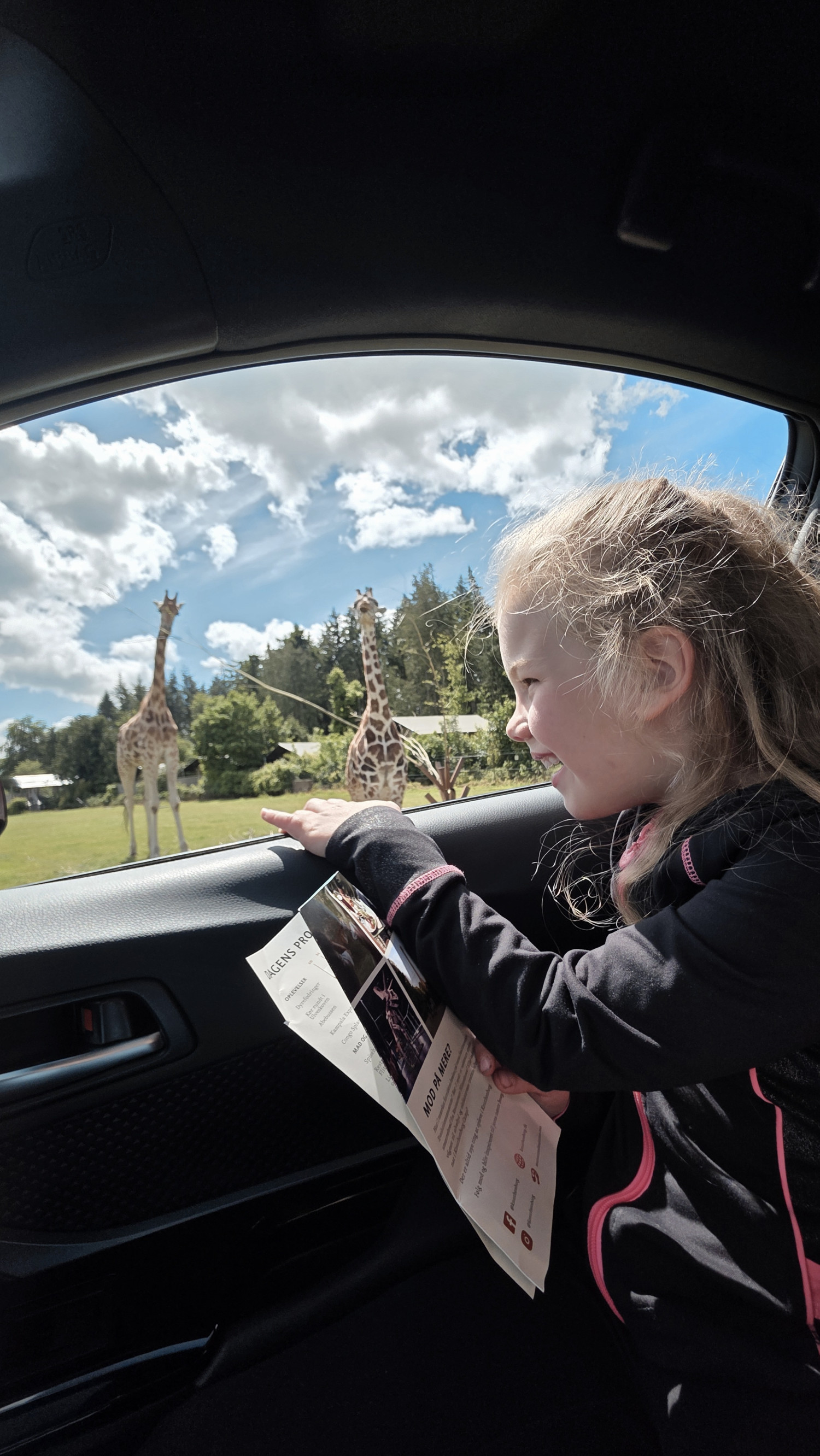 Familien pĂ„ safari i Knuthenborg â giraffer og andre dyr helt tĂŠt pĂ„ bilen