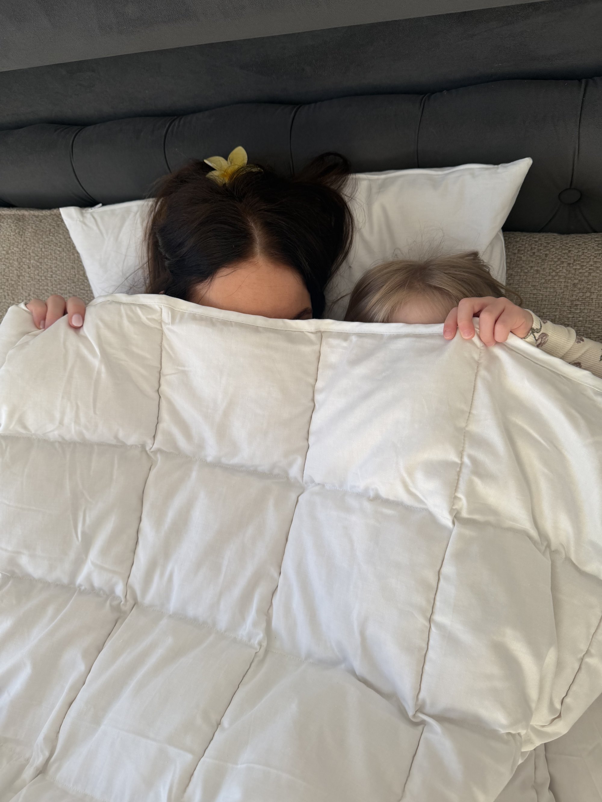 Carina og hendes søn Tristan testede dynen sammen: