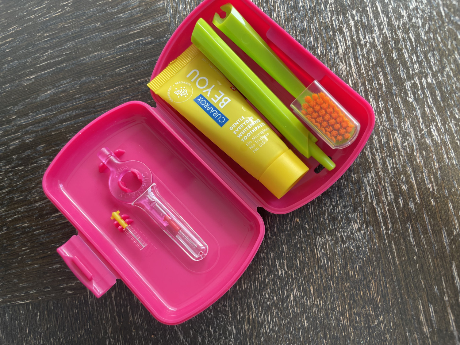 CURAPROX er kendt for tandplejeprodukter i høj kvalitet, og rejsesĂŚttet er udviklet til at gøre det nemt at holde en god mundhygiejne â ogsĂĽ nĂĽr man er pĂĽ farten. SĂŚttet indeholder en kompakt ĂŚske med tandbørste, tandpasta og mellemrumsbørster, sĂĽ man har alt samlet ĂŠt sted.